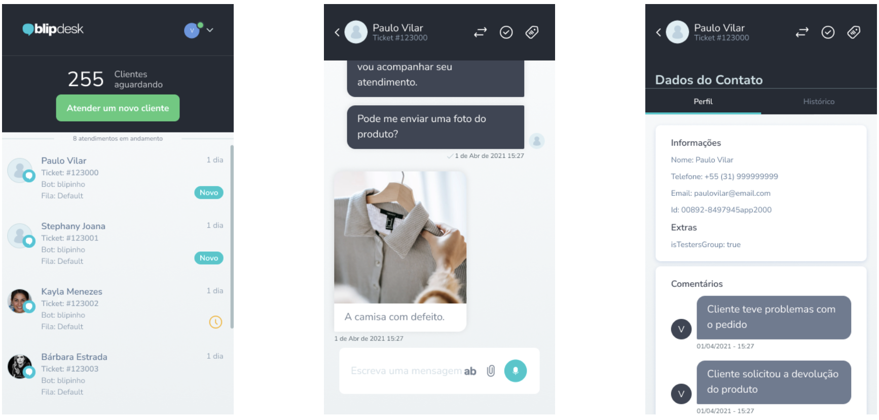 Hoy Blip Desk cuenta con cerca de 33 mil personas usuarias que realizan atención en diversos tipos de contextos. Los intercambios de mensajes están organizados por tickets que poseen diferentes estados para que quienes realizan la atención puedan organizarse. La aplicación móvil hoy cuenta con más de 10 mil personas usuarias.