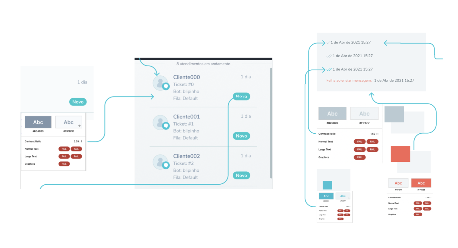 Seleccionamos algunos criterios de las Web Content Accessibility Guidelines (WCAG) que podíamos estudiar para realizar un experimento, adecuamos la interfaz de Blip Desk e hicimos pruebas con dos grupos: uno con personas con baja visión y otro con personas sin baja visión.
