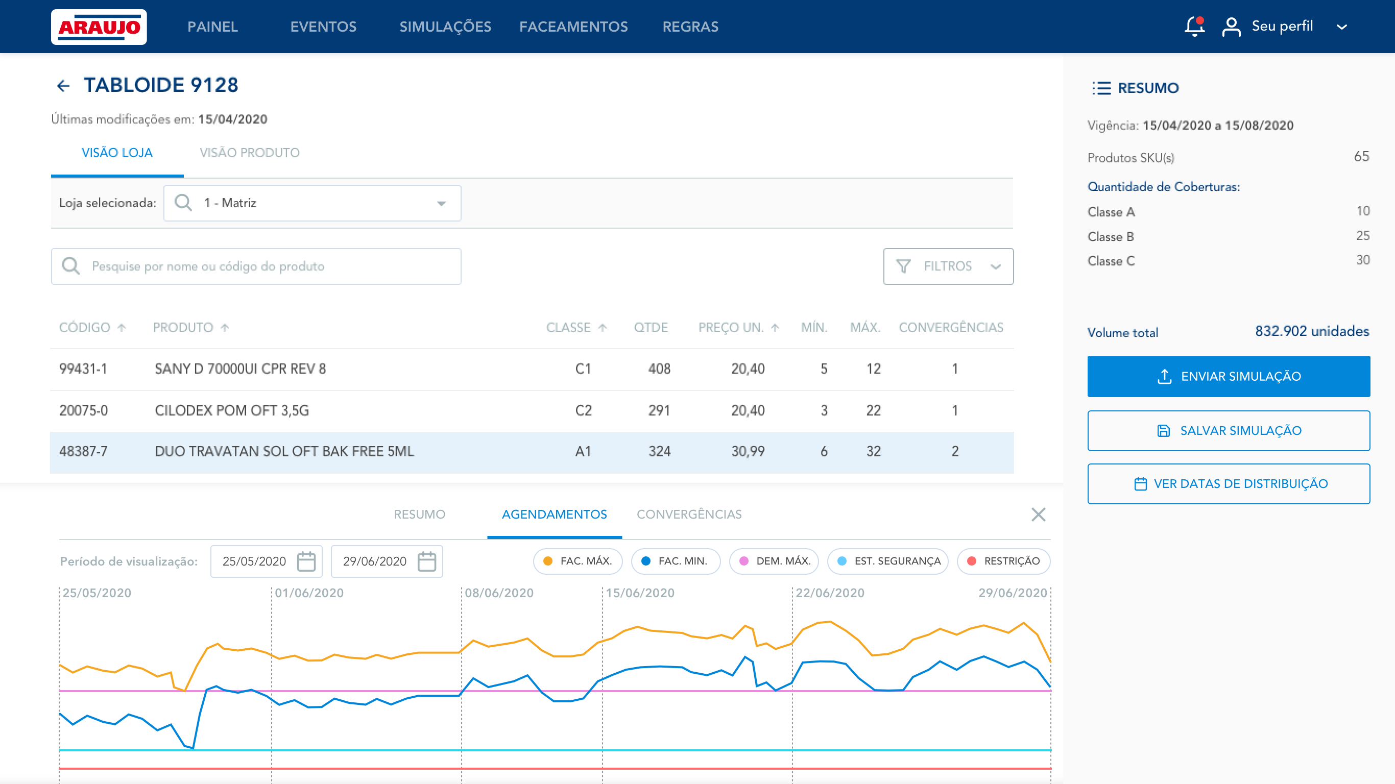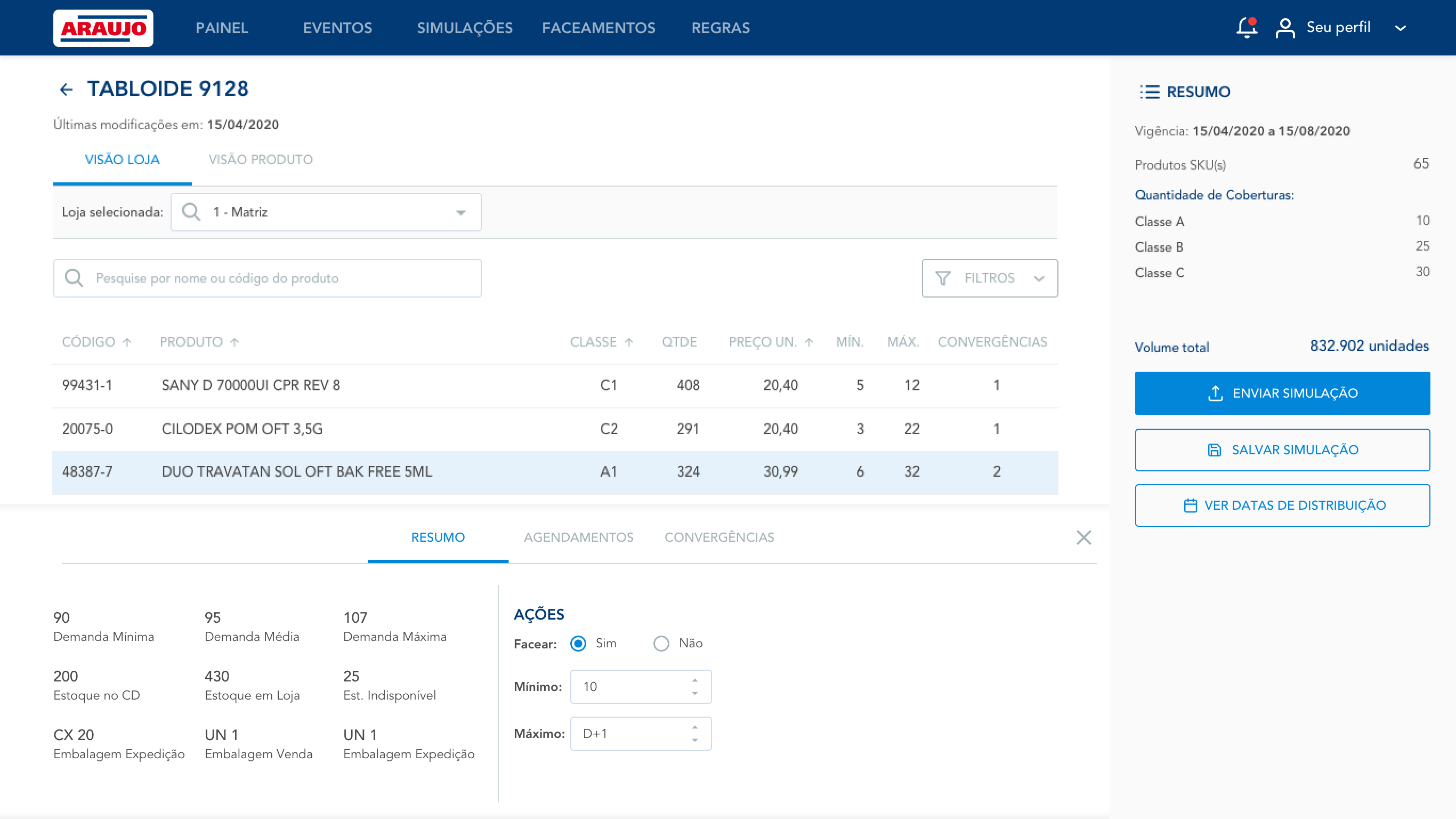 Las Farmacias Araujo son una importante cadena de farmacias en Minas Gerais, Brasil, con más de 250 tiendas, siendo la más grande de su sector en el estado. Además de medicamentos, Araujo ofrece a los clientes una variedad de productos de conveniencia no farmacéuticos, siguiendo el modelo "drugstore". Como negocio minorista, debe preparar su inventario y distribución a las tiendas según necesidades estacionales y promocionales.